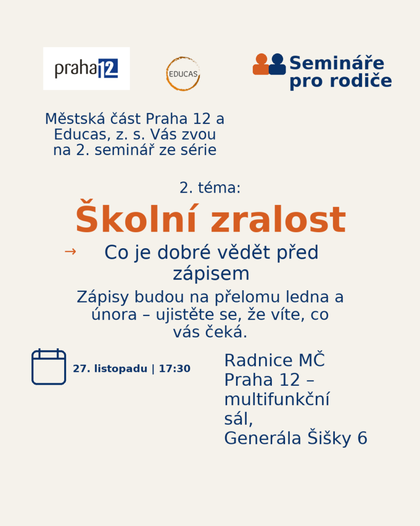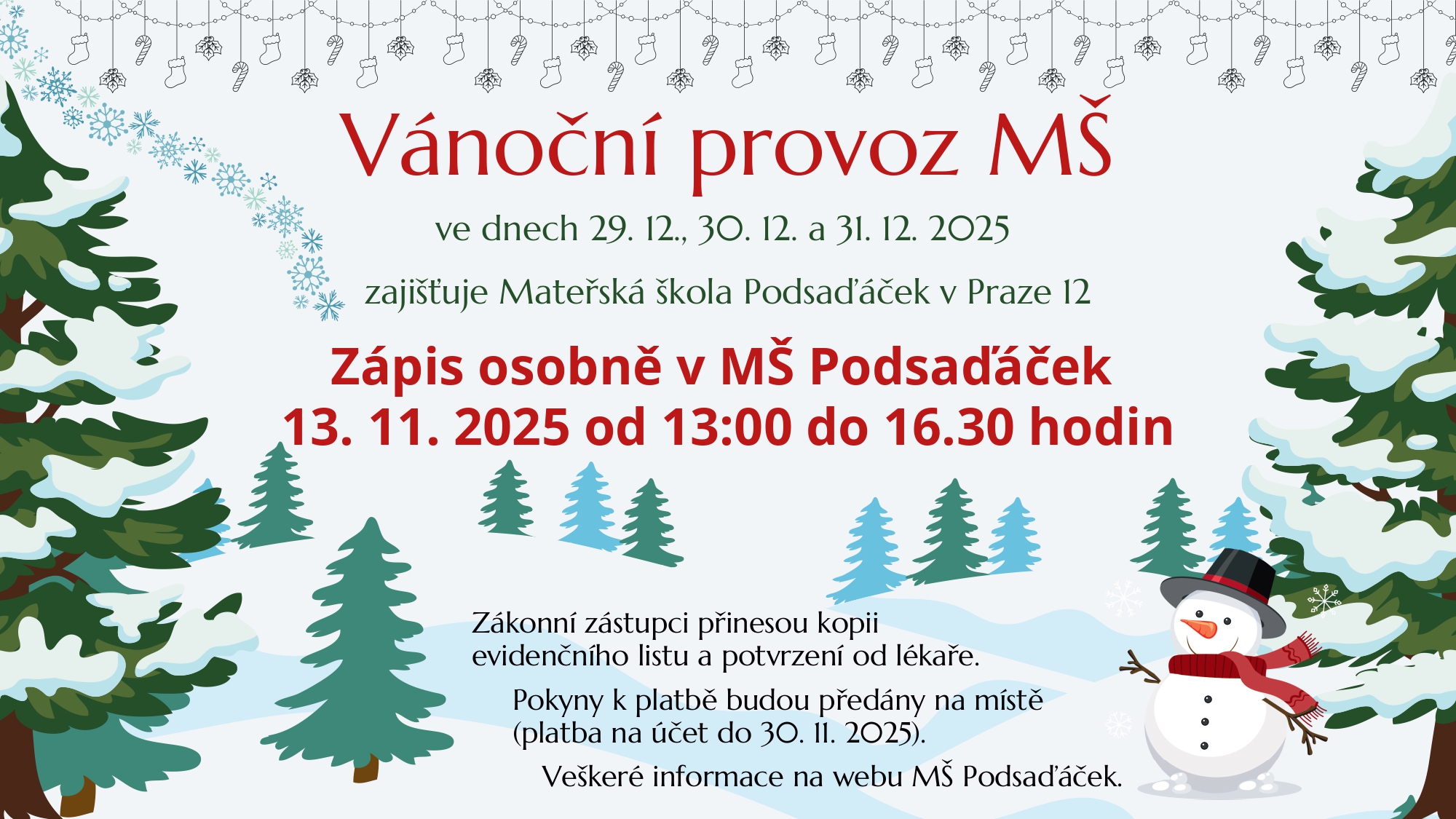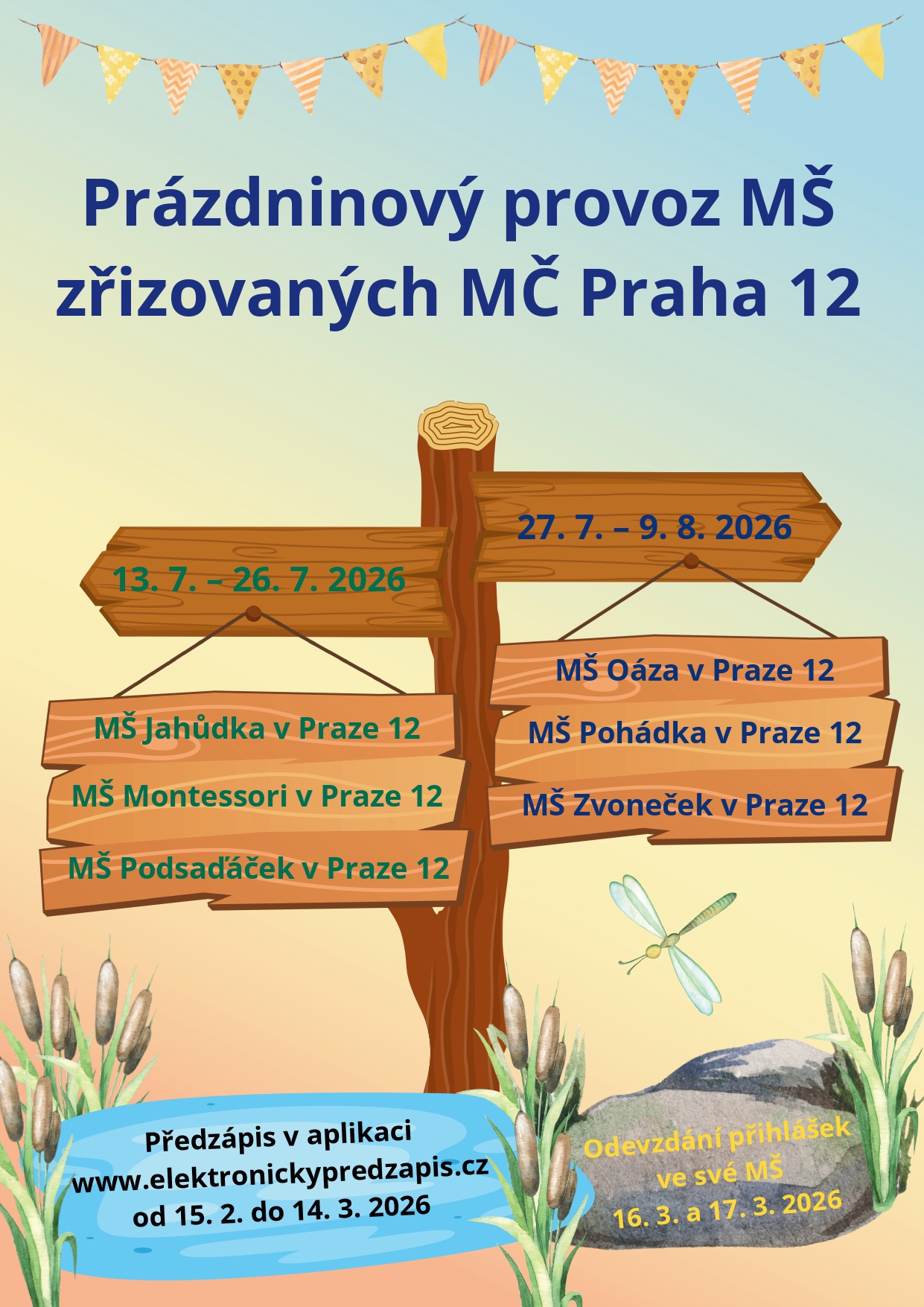 Aktuality Rozsvěcení vánočního stromu Prahy 12 Brožura MŠ a ZŠ v Praze 12 Brožury „Přijďte se podívat“ pro ZŠ a MŠ v Praze 12 https://www.praha12.cz/brozury-prijdte-se-podivat-pro-zs-a-ms-v-praze-12/d-87153 Akce na prosinec Akce na prosinec Zamykání zahrady v MŠ Oáza Seminář pro rodiče od MČ Prahy12 Provoz běheme Vánoc a léta Akce na listopad Hranice s láskou Digitální svět dětí Akce na měsíc Říjen Akce na měsíc Září